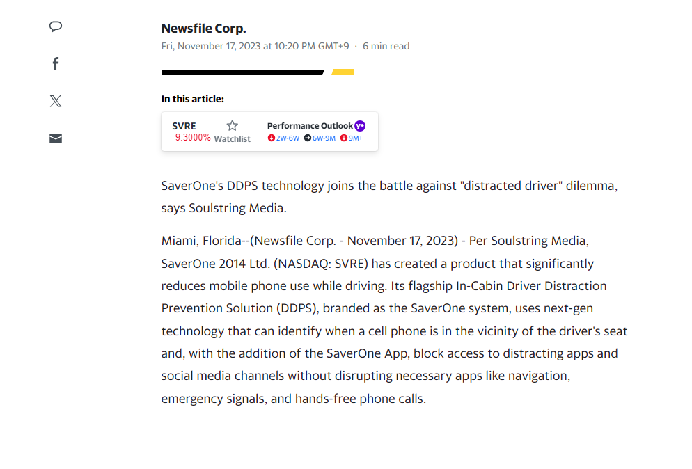 electronically via bank wire by a third party for a 4-day advertising / marketing campaign for NASDAQ: SVRE beginning on 11/16/2023 and ending on 11/21/2023. This message is meant for informational and educational purposes only and does not provide investment advice.