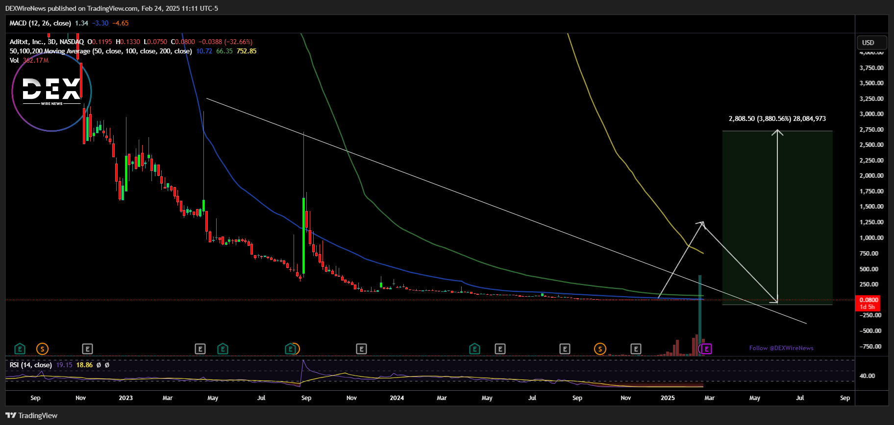 A critical support level has already been established, preventing further downside pressure. If ADTX breaks above the 38.2% Fibonacci retracement level, it could trigger a massive 3,000% surge, as traders recognize