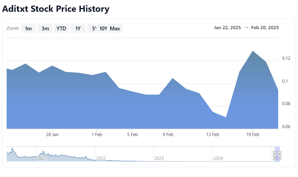 Aditxt Inc. (NASDAQ: ADTX) has a market cap or net worth of $6.879 million as of February 24, 2025. The next estimated earnings date is Tuesday, April 15, 2025, after market close.
