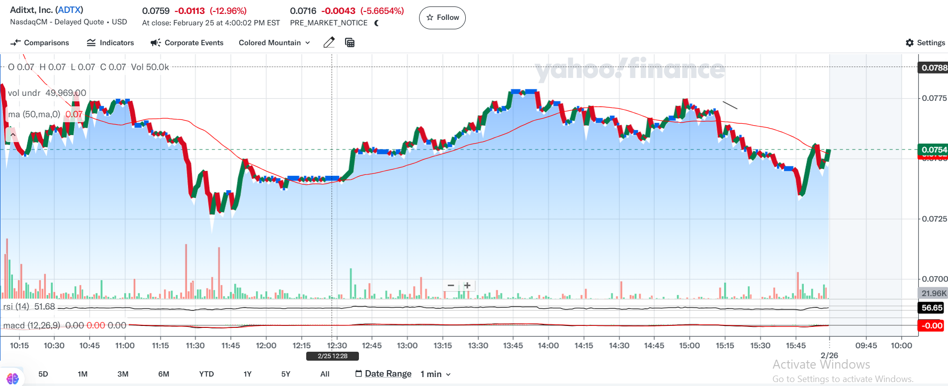 Despite being listed on NASDAQ, ADTX has an intraday market cap of just $5.988 million, an unusually low valuation given its positioning. This makes it a prime candidate for a revaluation, especially as trading volume continues to rise, indicating increased interest from buyers.