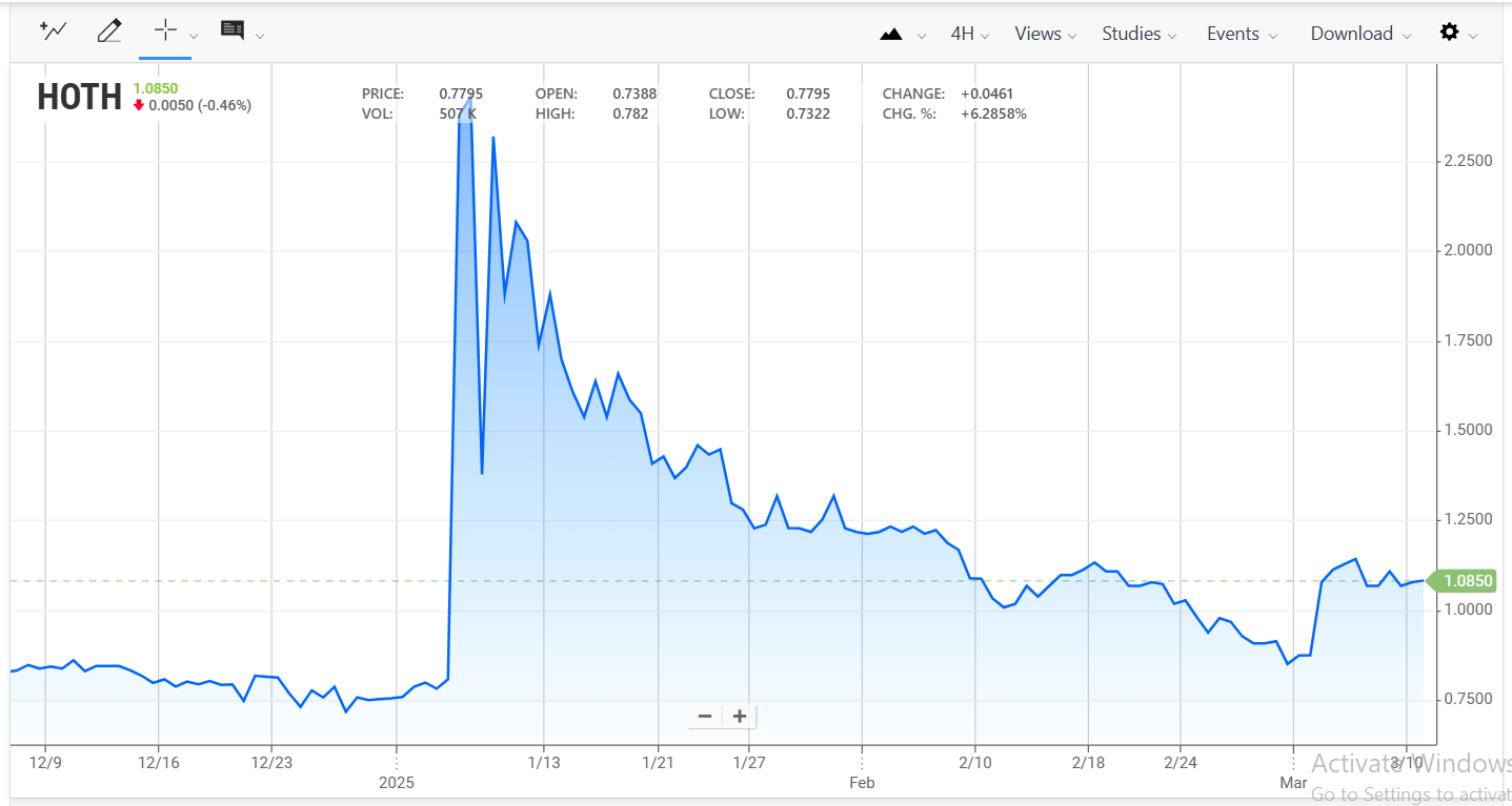 Technically, HOTH is trading at $1.08, with a 12-month analyst target of $4.75, signaling a potential 339% upside. With a Strong Buy rating from multiple analysts and price targets