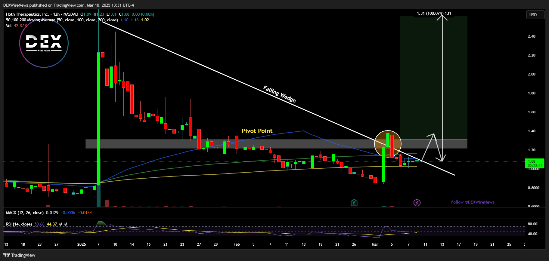 breakout points, which correspond to the $1.40–$1.50 price range. If NASDAQ: HOTH successfully breaks through these levels, a strong upward move could follow, validating the 100% surge potential. This setup is further reinforced by increasing trading volume and early signs of buyer interest, which could trigger the anticipated breakout.