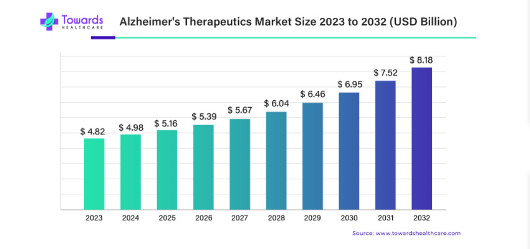 The global market for neurological and oncological treatments is expanding rapidly. The Alzheimer's therapeutics market, for instance, is projected to grow from $4.82 billion in 2023 to approximately $8.18 billion by 2032, reflecting a compound annual growth rate (CAGR) of 8.7%.