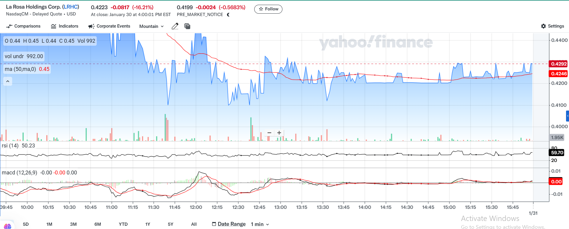 by One Eyed Jack Enterprises LLC for an advertising / marketing campaign for La Rosa Holdings Corp. (NASDAQ: $LRHC) beginning on 1/26/2025 and ending on 1/31/2025. DEXWireNews may receive additional campaigns in the future by One Eyed Jack Enterprises LLC or other third parties to distribute media for La Rosa Holdings (NASDAQ: LRHC).