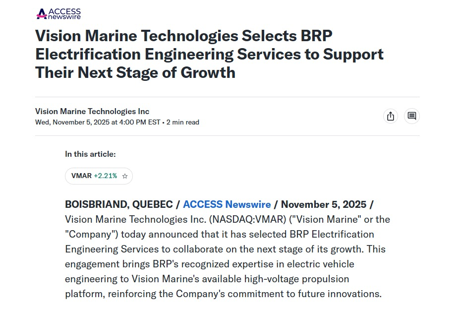 Breaking News: Vision Marine (NASDAQ: VMAR) Gains Early as BRP Deal Boosts Next-Stage Growth Outlook 🔥