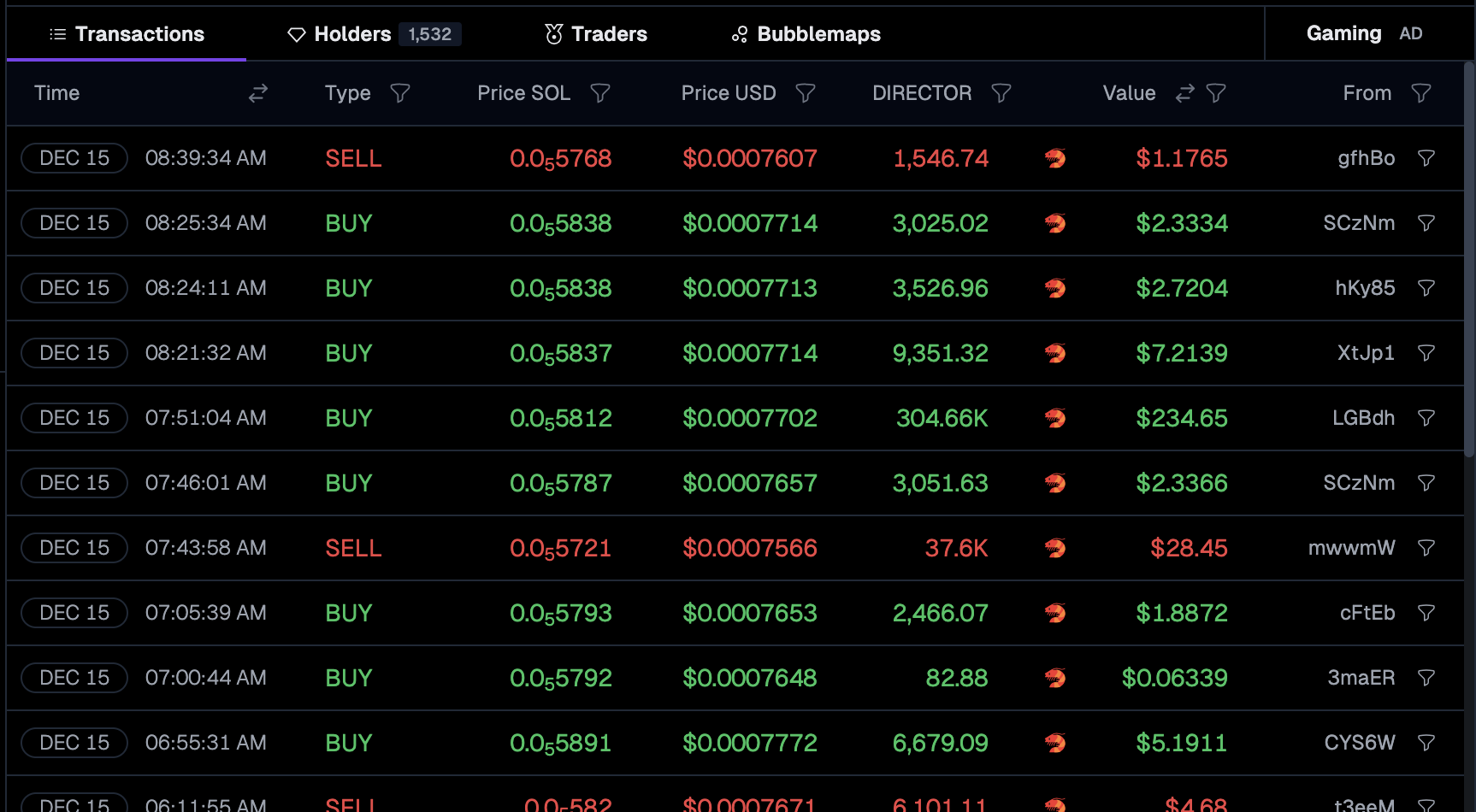 Over the past 2 days, Truman Show(SOL: DIRECTOR) has posted a 70%+ move, backed by rising on-chain activity and a fast-growing community. In a market where Solana memecoins have recently been plagued by short-lived launches, rugs, and liquidity traps, Truman Show(SOL: DIRECTOR) is standing out as a momentum-driven exception.