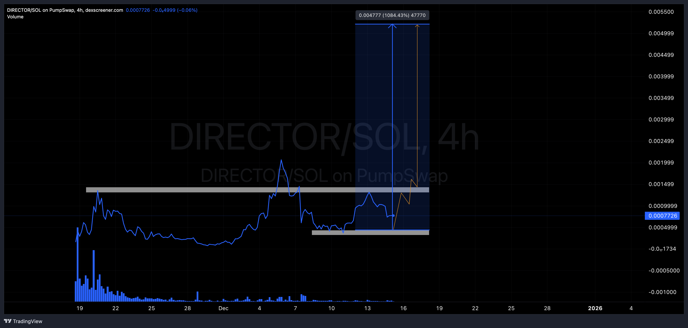 In short, current price action favors accumulation over exhaustion, positioning Truman Show(SOL: DIRECTOR) for a potential volatility expansion once resistance is breached.