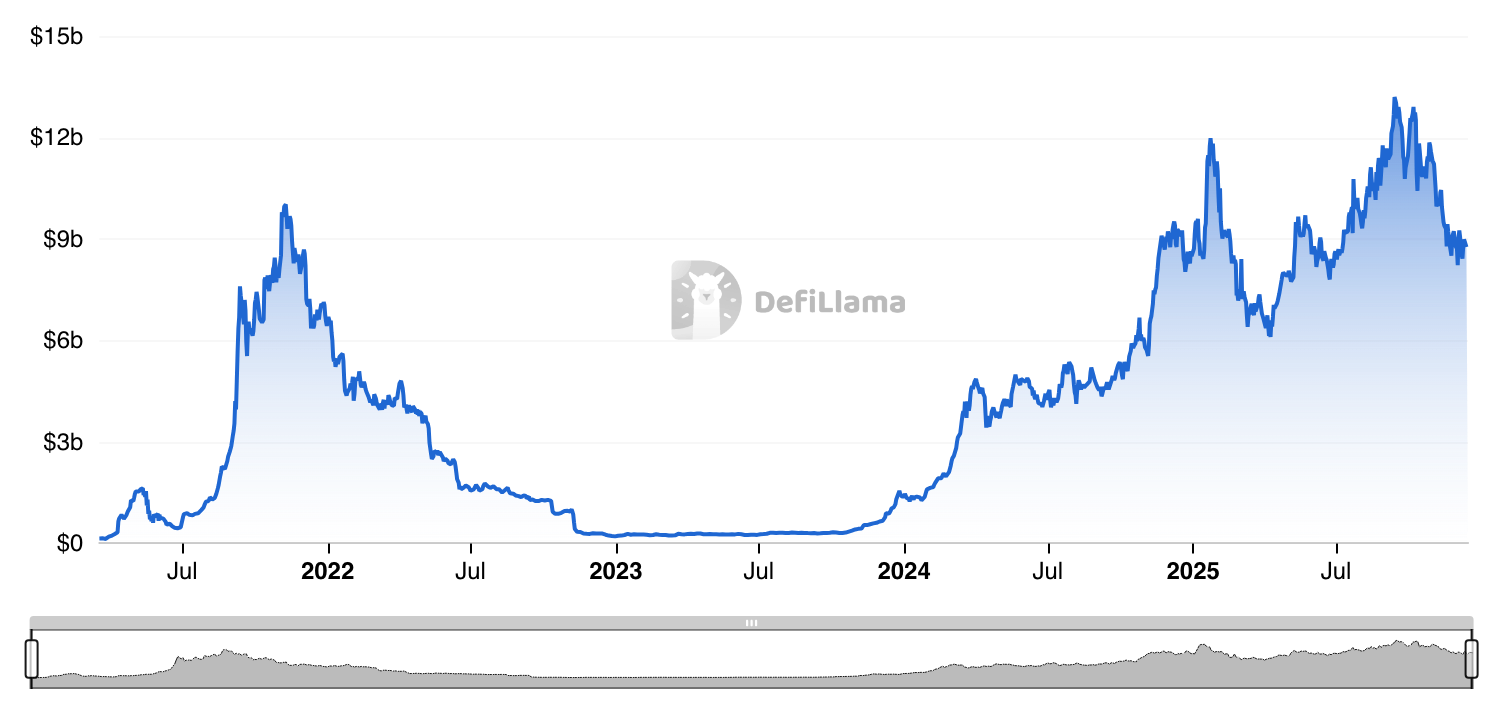 According to DefiLlama, the Solana ecosystem currently holds over $8.77 billion in Total Value Locked (TVL). This level of