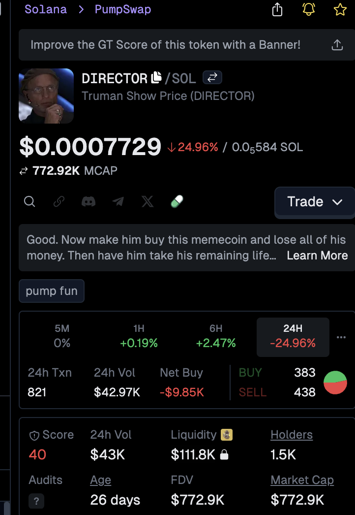 As always, we encourage you to conduct your own research and consider how Truman Show ($DIRECTOR on SOL) fits into your broader investment strategy.