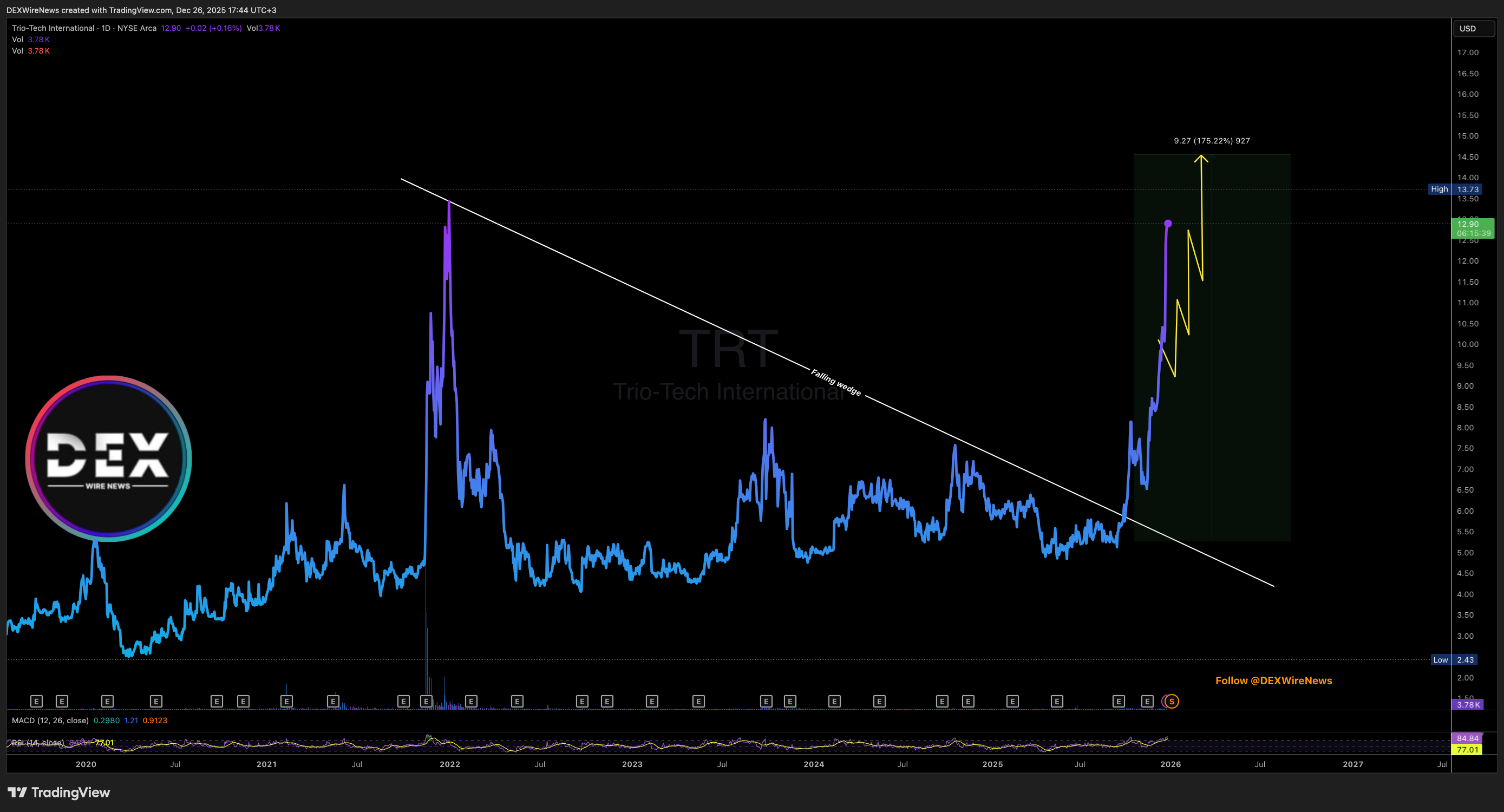 Since our last alert, Trio-Tech International (NYSE: TRT) has continued to push higher, adding another +5.90% on
