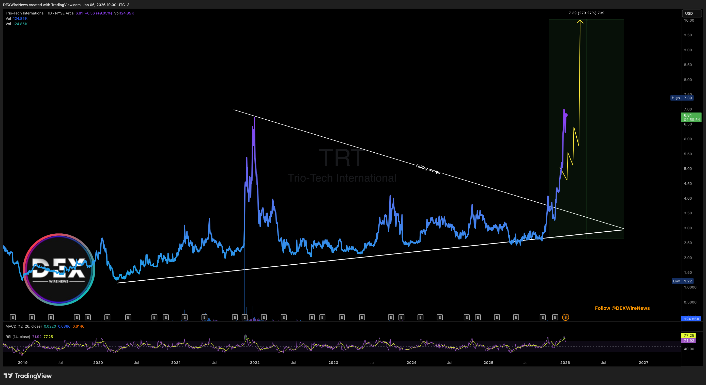 Prior to the split, TRT traded as high as $7.39 post-adjustment, a mechanical repricing that